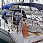 12V plug at charttable, 220V plug at charttable, 220V shore power supply with charger, 2nd anchor with 10m chain and rope, bimini top, chain markers, chartplotter in the cockpit, autopilot, bathing platform, cockpit speakers, gas stove with oven, heating, depth sounder,speed/windindicator, cockpit table, electric anchor windlass, dinghy, holding tank, outboard engine, LED lighting in salon and cabins, linen, pillows and blankets, VHF, stern shower, warm water, steering wheel, bow thruster, sprayhood, gangway, salon table converts to bed (lowerable), cockpit cushions, Solar Panels, furling main sail, furling genoa
