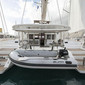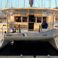 Generator, Air Conditioning, Electric anchor windlass, Bed linen, Dinghy, Autopilot, Heating, Gas bottles, Outdoor speakers, Refrigerator, Cockpit cushions, Kitchen utensils (Galley equipment, cutlery), Oven, Gas cookers, Pillows, Fenders, VHF radio, Wind instrument/Anemometer, Hard Top Bimini, Emergency tiller, Navigation (Nautical) charts and nautical guide, First aid kit, Life belts (Safety harness), Spare anchor (Reserve, Auxiliary anchor), Fire extinguisher, Hand bearing compass, Life jackets, Set of tools, Mooring ropes, Battery charger, Bilge pump - Mechanic, Gangway, Horseshoe lifebuoy, Distress flare box, Binoculars, Water hose, Fog horn, Radar reflector, Winch handles, Boat hook, Bilge pump - Electric, Navigation set, Light and rope for horseshoe life buoy, Divider, nautic chart, 12V Socket, Repair kit, Electric winch, Compass, Inverter, GPS chart plotter - cockpit, Electric toilet, 220V socket, Pump, Liferaft, Dishwasher, Black Water Tank, Solar panels, Mosquito nets, Tridata, Flashlight, Sink, Service batteries, Sun deck, Outside cushions, Sundeck cushions, Fusion radio, Cockpit grill, Wireless Internet Router, Electrical kettle, Moka pot, Anchor, Sunshades, Duvet cover