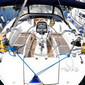 GPS chart plotter, Electric anchor windlass, DVD player, Bed linen, Dinghy, Bimini top, Autopilot, Sprayhood, Gas bottles, Radio CD player, LCD TV, Refrigerator, Hot water, Cockpit/stern, outside shower, Cockpit table, VHF radio, Log, Speed, Depth- echo sounder, Wind instrument/Anemometer, Gangway, Shore connection 220 V, Safety equipment, Complete navigation equipment, Tridata
