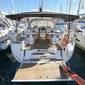 Bow thruster, GPS chart plotter, Electric anchor windlass, Bed linen, Dinghy, Bimini top, Autopilot, Sprayhood, Heating, Outdoor speakers, Refrigerator, Hot water, Teak cockpit, Cockpit/stern, outside shower, Cockpit table, VHF radio, Inverter, GPS chart plotter - cockpit, Radio CD player, USB, AUX input
