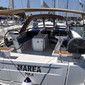 GPS chart plotter, Electric anchor windlass, Dinghy, Outboard engine, Bimini top, Autopilot, Sprayhood, GPS, Outdoor speakers, Refrigerator, Hot water, Cockpit cushions, Cockpit/stern, outside shower, Kitchen utensils (Galley equipment, cutlery), Oven, Fenders, VHF radio, Wind instrument/Anemometer, First aid kit, Fire extinguisher, Set of tools, Plastic bucket, Deck brush, Navigation set, Compass, Safety equipment, Lazy bag, Lazy jacks, Inside shower, Folding cockpit table, USB, Black Water Tank, Nautical charts, Flashlight, Logge/Lot/Speed, Stove, Fusion radio, Anchor