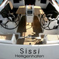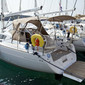 Bow thruster, Electric anchor windlass, Bed linen, Towels, Bimini top, Autopilot, Sprayhood, Heating, Freezer, Gas bottles, Radio CD player, Refrigerator, Hot water, Dinghy with outboard engine, Cockpit cushions, Cockpit/stern, outside shower, Cockpit table, Kitchen utensils (Galley equipment, cutlery), Oven, Gas cookers, VHF radio, Bathing platform, Life belts (Safety harness), Life jackets, Battery charger, Bilge pump - Mechanic, Radar reflector, Bilge pump - Electric, Pilot book, Inverter, GPS chart plotter - cockpit, Liferaft, Nautical charts, Wi-Fi Internet, Tridata