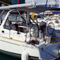 Bow thruster, GPS chart plotter, Bed linen, Dinghy, Bimini top, Autopilot, Sprayhood, Heating, Outdoor speakers, Refrigerator, Hot water, Cockpit cushions, Cockpit/stern, outside shower, Cockpit table, Kitchen utensils (Galley equipment, cutlery), Echosounder/Depthsounder, VHF radio, Navigation (Nautical) charts and nautical guide, Battery charger, Bilge pump - Mechanic, Bilge pump - Electric, Radio CD mp3 player, Safety equipment, Solar panels