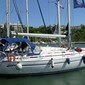 Bow thruster, GPS chart plotter, Electric anchor windlass, Bed linen, Towels, Dinghy, Bimini top, Autopilot, Sprayhood, Freezer, Outdoor speakers, Refrigerator, Hot water, Teak cockpit, Cockpit cushions, Cockpit/stern, outside shower, Cockpit table, Kitchen utensils (Galley equipment, cutlery), Oven, Pillows, Fenders, Echosounder/Depthsounder, VHF radio, Wind instrument/Anemometer, Speedometer (Speed log), Bathing platform, First aid kit, Life belts (Safety harness), Fire extinguisher, Life jackets, Set of tools, Mooring ropes, Bilge pump - Mechanic, Swimming ladder, Horseshoe lifebuoy, Distress flare box, Fog horn, Radar reflector, Winch handles, Anchor with chain, Bilge pump - Electric, Shore power cable, Oars (Paddles), Yacht documents, Water pump, Pilot book, Batteries, Bosun's chair (Safe seat) (boatswain's chair), Navigation set, Plug 220V, 12 V, Shore connection 220 V, Windex, Divider, nautic chart, 12V Socket, Blankets, Repair kit, Compass, LED Navigation lights, Complete navigation equipment, Electric fans in cabins, GPS chart plotter - cockpit, List of lights, Floating light, 220V socket, Liferaft, Black Water Tank, Solar panels, Nautical charts, Anchor Delta, GMDSS - Global Maritime Distress and Safety System, Mosquito nets, EPIRB-Distress radio beacons, LED interior lights, Torch, Isotherm boiler, Service batteries, Wine cellar, Stove, Radio, Indirect lighting in cabins and salon, Electricity 230VAC, Helm station, USB sockets, Convertible table in salon, Sofa, Sunshades, Dining table