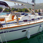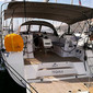 Bow thruster, Electric anchor windlass, Dinghy, Bimini top, Autopilot, Sprayhood, Heating, Gas bottles, Outdoor speakers, Refrigerator, Hot water, Teak cockpit, Cockpit cushions, Cockpit/stern, outside shower, Cockpit table, Kitchen utensils (Galley equipment, cutlery), Fenders, VHF radio, Navigation (Nautical) charts and nautical guide, First aid kit, Life belts (Safety harness), Spare anchor (Reserve, Auxiliary anchor), Fire extinguisher, Life jackets, Set of tools, Mooring ropes, Battery charger, Gangway, Barometer, Clock, Water hose, Plastic bucket, Fog horn, Radar reflector, Boat hook, Jerry cans for diesel, Dinghy (byboat) pump, Batteries, Bosun's chair (Safe seat) (boatswain's chair), Navigation set, Spotlight / Headlights, Canister for water, Shore connection 220 V, Wire (shroud) cutter, Harbour guides, Inverter, GPS chart plotter - cockpit, Round/globular fender, Liferaft, Repair box for dinghy, Solar panels, Hawser, Anchor line, Spring line, Main anchor, Gennaker-device, Black conus, Black ball, Anchor swivel, Flashlight, Life buoy + Flashing light, Distress signals, Spyglass with bearing compass, Impeller, V-belt, oilfilter, Logge/Lot/Speed/Wind, Radio, Screen