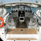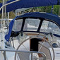 GPS chart plotter, Electric anchor windlass, Bed linen, Dinghy, Bimini top, Autopilot, Sprayhood, Gas bottles, Radio CD player, Refrigerator, Hot water, Cockpit cushions, Cockpit/stern, outside shower, Cockpit table, Oven, Gas cookers, Echosounder/Depthsounder, VHF radio, Navigation (Nautical) charts and nautical guide, Battery charger, Bilge pump - Mechanic, Bilge pump - Electric, Shore connection 220 V, 12V Socket, Self tailing (manual) winch, Inverter, GPS chart plotter - cockpit, Converter 220V/12V, Black Water Tank, Solar panels, Salon table, Automatic Inflatable Life Jacket