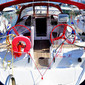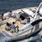 Bow thruster, GPS chart plotter, Electric anchor windlass, DVD player, Bed linen, Dinghy, Bimini top, Autopilot, Sprayhood, Heating, Gas bottles, Radio CD player, LCD TV, Refrigerator, Hot water, Cockpit/stern, outside shower, Cockpit table, VHF radio, Wind instrument/Anemometer, Battery charger, Gangway, Shore connection 220 V, Safety equipment, Complete navigation equipment, Lazy jacks, Tridata, Automatic Inflatable Life Jacket