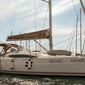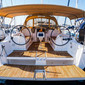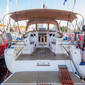 Electric anchor windlass, Bed linen, Dinghy, Bimini top, Autopilot, Sprayhood, Radio CD player, Outdoor speakers, Refrigerator, Hot water, Teak cockpit, Cockpit/stern, outside shower, Cockpit table, Kitchen utensils (Galley equipment, cutlery), Oven, Gas cookers, VHF radio, Bathing platform, Navigation (Nautical) charts and nautical guide, Set of tools, Battery charger, Pilot book, Inverter, GPS chart plotter - cockpit, Tridata