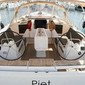 Life jackets, Autopilot, Bathing platform, Battery charger, Bimini, Bowtruster, Cockpit shower, Depth speed, Electric windlass, Electrical bilge pump, Electrical water pump, GPS chartplotter in cockpit, Hot water, LCD TV, Motor battery, Outside speakers, Radio with CD or MP3 player, Refrigerator 12V, Roll genoa, Roll main sail, Service battery, Sprayhood, VHF, WiFi, Wind, Anchor + chain, Black ball, Black cone, Boat hook, Bucket, Deckbrush, Dinghy, Emergency helm, Flat fenders, Funnel, Gangway, Gas bottles, Jerrycan for fuel, Jerrycan for water, Lifebuoy with light, Oars for dinghy, Outboard engine holder, Pump for dinghy, Radar reflector, Round fenders, Second anchor + chain, Shore power line, Sponge, Water hose, Barometer, Binocular, Clock, Divider, Handbearing compass, Navigation charts set, Navigation ruler, Pen and pencil set, Pilot book, Triangle, Bosun chair, Distress flares box, Fire extinguishers, First aid kit, Flash lamp, Foghorn, Tool set, Windlass handle, Windlass remote control