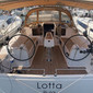 Bow thruster, Electric anchor windlass, TV, Bimini top, Autopilot, Sprayhood, Heating, Outdoor speakers, Refrigerator, Teak cockpit, Cockpit cushions, Cockpit/stern, outside shower, Cockpit table, Fenders, VHF radio, Wind instrument/Anemometer, Bathing platform, Navigation (Nautical) charts and nautical guide, First aid kit, Life belts (Safety harness), Fire extinguisher, Mooring ropes, Bilge pump - Mechanic, Swimming ladder, Gangway, Binoculars, Water hose, Winch handles, Boat hook, Bilge pump - Electric, Shore power cable, Navigation set, Shore connection 220 V, 12V Socket, Harbour guides, Repair kit, Inflatable life raft, Compass, Inverter, Electric fans in cabins, Lazy bag, Lazy jacks, GPS chart plotter - cockpit, Electric toilet, Inside shower, Round/globular fender, Black Water Tank, Main anchor, Wi-Fi Internet, Mosquito nets, Tridata, Flashlight, Indoor speakers, Life buoy + Flashing light, Self inflating life vest, Distress signals, Lifelines, Slatted frame, AIS, Lowerable salon table, Automatic Inflatable Life Jacket, Convertible table in salon