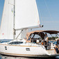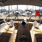 Bow thruster, GPS chart plotter, Electric anchor windlass, Dinghy, Bimini top, Autopilot, Sprayhood, GPS, Outdoor speakers, Refrigerator, Hot water, Cockpit cushions, Cockpit/stern, outside shower, Kitchen utensils (Galley equipment, cutlery), Oven, Fenders, VHF radio, Wind instrument/Anemometer, First aid kit, Fire extinguisher, Set of tools, Plastic bucket, Deck brush, Navigation set, Compass, Safety equipment, Inside shower, Folding cockpit table, USB, Black Water Tank, Solar panels, Nautical charts, Flashlight, Logge/Lot/Speed, Stove, Fusion radio, Anchor, Convertible table in salon