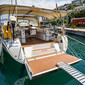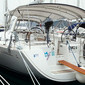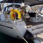Bow thruster, GPS chart plotter, Electric anchor windlass, Dinghy, Bimini top, Autopilot, Sprayhood, Gas bottles, Snorkeling equipment, Outdoor speakers, Refrigerator, Hot water, Teak cockpit, Cockpit cushions, Coffee machine, Cockpit/stern, outside shower, Cockpit table, Kitchen utensils (Galley equipment, cutlery), Oven, Gas cookers, Pillows, Fenders, Log, VHF radio, Wind instrument/Anemometer, Emergency tiller, First aid kit, Life belts (Safety harness), Spare anchor (Reserve, Auxiliary anchor), Fire extinguisher, Hand bearing compass, Life jackets, Set of tools, Mooring ropes, Battery charger, Bilge pump - Mechanic, Swimming ladder, Gangway, Sun tent/cover, Barometer, Clock, Binoculars, Water hose, Plastic bucket, Fog horn, Radar reflector, Winch handles, Anchor with chain, Boat hook, Deck brush, Jerry cans for diesel, Bilge pump - Electric, Shore power cable, Dinghy (byboat) pump, Oars (Paddles), Pilot book, Batteries, Life jacket (children), Bosun's chair (Safe seat) (boatswain's chair), Navigation set, Sponge, Plug 220V, 12 V, Canister for water, Fuel funnel, Reserve motor oil, Windex, Wire (shroud) cutter, Cockpit light, Jerry cans for fuel, Blankets, Repair kit, Search light, Compass, Inverter, Mobile phone, Round/globular fender, Liferaft, Repair box for dinghy, Black Water Tank, Solar panels, Nautical charts, Start battery, Spring line, Radio CD player, USB, AUX input, Convertible table, Sink, Torch, Life buoy + Flashing light, Distress signals, Service batteries, Impeller, V-belt, oilfilter, Fire blanket, Sos Dan Buoy