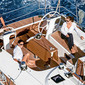 Bow thruster, GPS chart plotter, Electric anchor windlass, Dinghy, Bimini top, Autopilot, Sprayhood, Gas bottles, Snorkeling equipment, Outdoor speakers, Refrigerator, Hot water, Teak cockpit, Cockpit cushions, Coffee machine, Cockpit/stern, outside shower, Cockpit table, Kitchen utensils (Galley equipment, cutlery), Oven, Gas cookers, Pillows, Fenders, Log, VHF radio, Wind instrument/Anemometer, Emergency tiller, First aid kit, Life belts (Safety harness), Spare anchor (Reserve, Auxiliary anchor), Fire extinguisher, Hand bearing compass, Life jackets, Set of tools, Mooring ropes, Battery charger, Bilge pump - Mechanic, Swimming ladder, Gangway, Sun tent/cover, Barometer, Clock, Binoculars, Water hose, Plastic bucket, Fog horn, Radar reflector, Winch handles, Anchor with chain, Boat hook, Deck brush, Jerry cans for diesel, Bilge pump - Electric, Shore power cable, Dinghy (byboat) pump, Oars (Paddles), Pilot book, Batteries, Life jacket (children), Bosun's chair (Safe seat) (boatswain's chair), Navigation set, Sponge, Plug 220V, 12 V, Canister for water, Fuel funnel, Reserve motor oil, Windex, Wire (shroud) cutter, Cockpit light, Jerry cans for fuel, Blankets, Repair kit, Search light, Compass, Inverter, Mobile phone, Round/globular fender, Liferaft, Repair box for dinghy, Black Water Tank, Solar panels, Nautical charts, Start battery, Spring line, Radio CD player, USB, AUX input, Convertible table, Sink, Torch, Life buoy + Flashing light, Distress signals, Service batteries, Impeller, V-belt, oilfilter, Fire blanket, Sos Dan Buoy