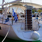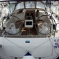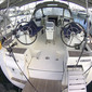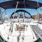 Electric anchor windlass, Bed linen, Dinghy, Bimini top, Autopilot, Sprayhood, Radio CD player, Outdoor speakers, Refrigerator, Hot water, Cockpit cushions, Cockpit/stern, outside shower, Cockpit table, Kitchen utensils (Galley equipment, cutlery), Pillows, Fenders, Echosounder/Depthsounder, VHF radio, Speedometer (Speed log), First aid kit, Life belts (Safety harness), Fire extinguisher, Hand bearing compass, Life jackets, Set of tools, Mooring ropes, Gangway, Distress flare box, Binoculars, Fog horn, Winch handles, Anchor with chain, Boat hook, Deck brush, Jerry cans for diesel, Shore power cable, Dinghy (byboat) pump, Oars (Paddles), Pilot book, Toilet brush, Clothes hangers, Bilge pump handle, Fuel funnel, Shore connection 220 V, Windex, Divider, nautic chart, Self tailing (manual) winch, Electric fans in cabins, GPS chart plotter - cockpit, Liferaft, Bin bag, USB, Nautical charts, Flashlight, Life buoy + Flashing light, Sheets, Parallel ruler, Dishes, Windscoops, AUX Input, Mask and snorkel, Floating rope, FUSION sound system, Sun awning (aft and forward), Sun awning (forward cockpit)