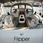 Bow thruster, Electric anchor windlass, TV, Bimini top, Autopilot, Sprayhood, Heating, Outdoor speakers, Refrigerator, Hot water, Teak cockpit, Cockpit cushions, Cockpit/stern, outside shower, Cockpit table, Kitchen utensils (Galley equipment, cutlery), Oven, Gas cookers, Fenders, VHF radio, Wind instrument/Anemometer, Bathing platform, Navigation (Nautical) charts and nautical guide, First aid kit, Life belts (Safety harness), Spare anchor (Reserve, Auxiliary anchor), Fire extinguisher, Hand bearing compass, Life jackets, Mooring ropes, Battery charger, Signal rockets and torches, Bilge pump - Mechanic, Swimming ladder, Gangway, Barometer, Clock, Binoculars, Water hose, Fog horn, Winch handles, Boat hook, Bilge pump - Electric, Shore power cable, Oars (Paddles), Batteries, Navigation set, Shore connection 220 V, 12V Socket, Harbour guides, Blankets, Repair kit, Compass, Inverter, Electric fans in cabins, GPS chart plotter - cockpit, Electric toilet, Composite steering wheels, Pump, Converter 220V/12V, Round/globular fender, Liferaft, Black Water Tank, Solar panels, Safe, Main anchor, Radio CD/MP3 player, AUX input, Wi-Fi Internet, Tridata, Flashlight, Life buoy + Flashing light, Service batteries, AIS, Lowerable salon table, Automatic Inflatable Life Jacket
